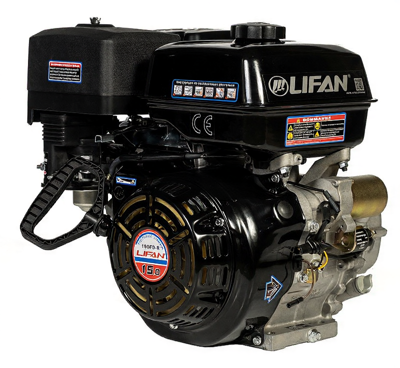 Бензиновый двигатель Lifan 190FD-R 3А (15 л. с.) предназначен для использования в малой бытовой технике. Оснащён центробежной многодисковой муфтой и цепным редуктором, которые снижают скорость и увеличивают крутящий момент. Сцепление позволяет регулировать количество оборотов ручного газа.