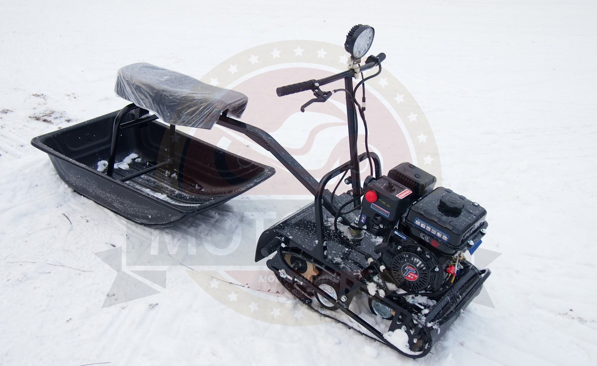 В продаже есть различные варианты комплектаций буксировщиков Белка, как правило, сейчас используются двигатели Lifan 8 л.с. типа KP-230, самые бюджетные варианты, например не имеют фары и электростартера, но также есть варианты с фарой и электростартером. Стоит отметить такую особенность конструкции Белка, как небольшой размер гусеницы, по глубокому и рыхлому снегу такой буксировщик, конечно, не поедет, он в первую очередь предназначен для утоптанных дорожек, по которым ездят снегоходы или другой вид мототехники, как правило, буксировщик Белка покупают рыбаки, чтобы добраться до места рыбалки. Также стоит отметить, что тяговая способность такого буксировщика достаточно высокая, он способен везти не только водителя и пассажира, но и дополнительный груз. Данный вид буксировщиков, не смотря на его компактность, имеет достаточно большие возможности по транспортировке тяжелых грузов.